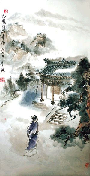 市区往西1公里许有一排土山岗,从东向西突出九个山峰,其状如龙头高昂,人称九龙山、九龙头、九龙岗,古时每个山头曾各建一庙,所以也叫九龙庙。传说八仙中的张果老与铁拐李在中条山修行时,相约外出云游吕梁山,张果老骑毛驴先行,铁拐李无坐骑,就寻了一匹麒麟赶路。下了中条山,穿越峨嵋岭,渡过汾河滩,来到九龙山下,转眼间铁拐李无踪无影,驾云而去,只留麒麟在中间山岗卧息,后人即将此岗称为卧麟岗。清咸丰十一年(1861),崇文社王照离等人在卧麟岗创修崇文阁、纯阳洞时,又将此地题名为“麟岛”。麟岛古称真武庙(亦即玄武庙),后来因其他八个山岗所建之庙损毁,仅存中间山岗所建的真武庙,因而,真武庙也称九龙庙。