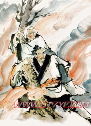 春秋晋国时,献公死后,诸公子争夺王位,酿成内乱,次子重耳因受到其父王宠爱的骊姬的迫害,逃亡外国。途中,由于连日跋涉,饥寒交迫,侍臣们散的散,亡的亡,所剩无几,唯有介子推、赵衰、狐偃等人一直护卫着他。一日来到羊舍(今洪洞南9公里处)时,人困马乏,饥渴交迫。重耳连声哀叹,泪水涟涟,侍臣们看到主子如此饥饿难耐和忧愁痛苦的样子,心情忧急,四处寻觅食物。只因为前不挨村,后不着店,最终一无所获。介子推心里很是难过,就避开众人,用利刃在自己大腿上割了一块肉,煮成羹汤,捧给重耳。重耳闻到了一股诱人的肉香,端过来就喝,连连称道:“好香的野味,是哪一位爱卿猎来的?”重耳随众人的目光看去,只见介子推面色苍白,下衣滴血,便什么都知道了,便抱住介子推连声呼道:“介爱卿,来日平息,定报答你的大恩大德。”