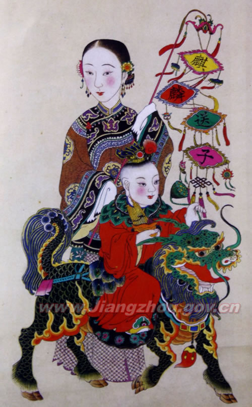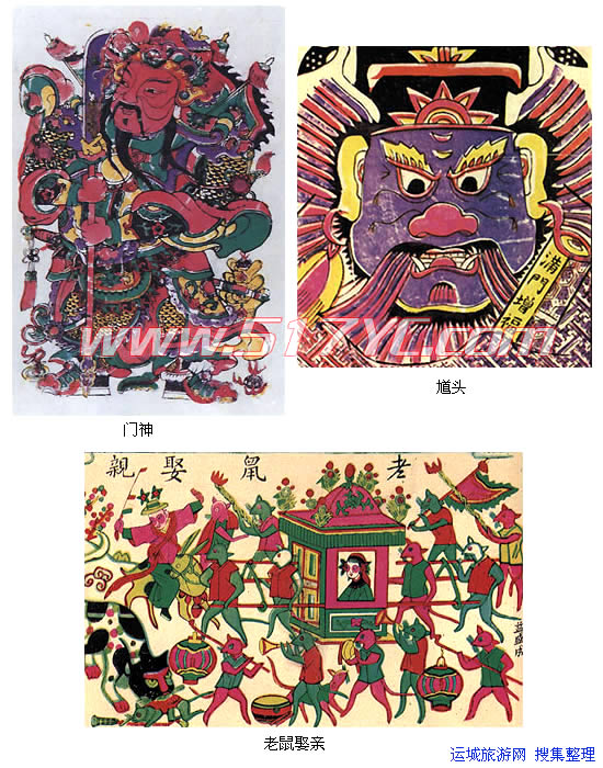 深受广大群众喜爱的绛州木版年画有景记《二十四孝》年画和《三国演义》连环画等,《春牛图》、《馗首》、《老鼠娶亲》等作品都无愧为中国年画艺术宝库中的珍品,其中《春牛图》被中国美术全集收辑。