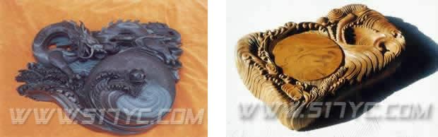 其次是绿砂,又叫茶叶末,蟹壳青较硬。又次为玫瑰紫,日本人呼之"虾头红"较少。澄泥砚之所以呈现不同的颜色,是因为烧制时不同温度所致。