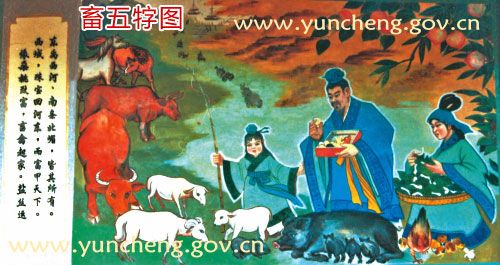 随着畜牧业的兴盛壮大,他又在古郇方圆百余里的土地上,购置并规划了三个畜牧区域,让三个儿子分别经营。他仔细观察、认真分析各种畜禽的生活习性,逐步摸索总结出“牛者顿足,马者夜饱,羊行自饱”的规律。他创造的“盐水饮畜”、“斗米养千鸡”的饲养方法和为雄畜去睾丸的办法,极大地提高了饲养效率。他不仅用留强去弱的办法提高种畜质量,还把本地和外地品种进行交配来繁育后代,为畜禽品种改良作出了巨大贡献。直到今天,运城的大黄牛和高个子驴,依然闻名遐迩,尤其是大黄牛,被誉为全国“五大良种”之一。